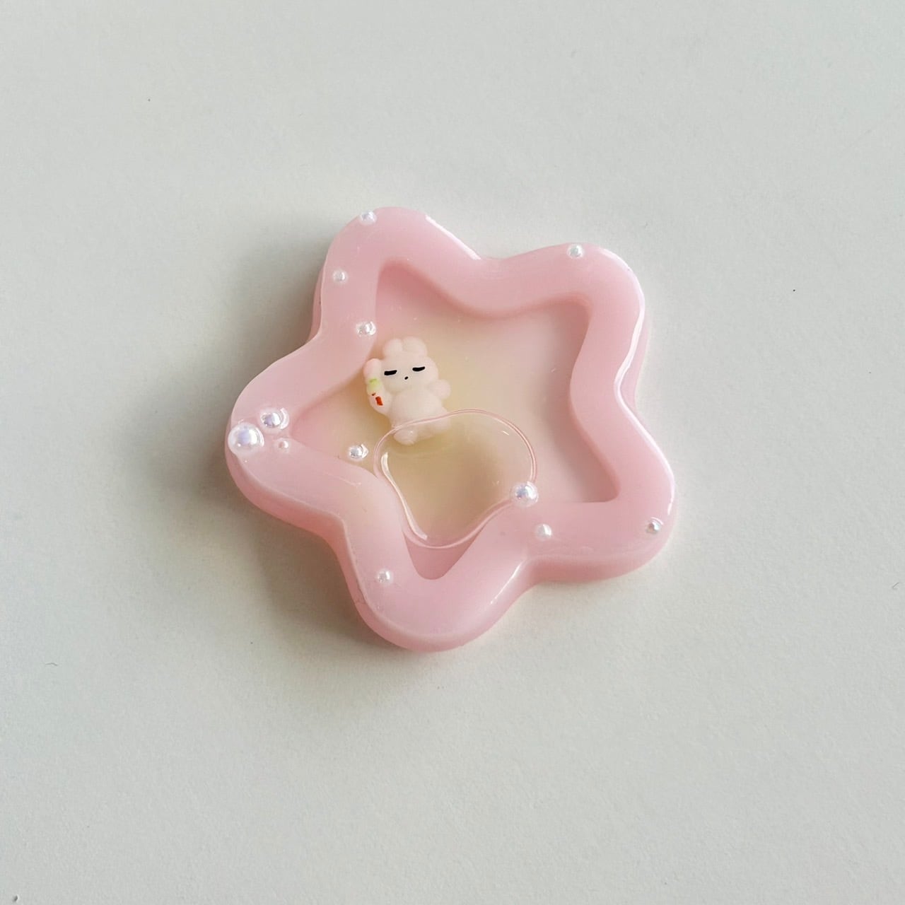 ぷかぷかとモチヨチズが泳ぐシェイカー型スマホグリップです。
