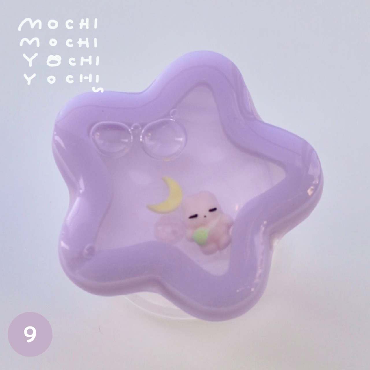 ぷかぷかとモチヨチズが泳ぐ、シェイカー型スマホグリップです。