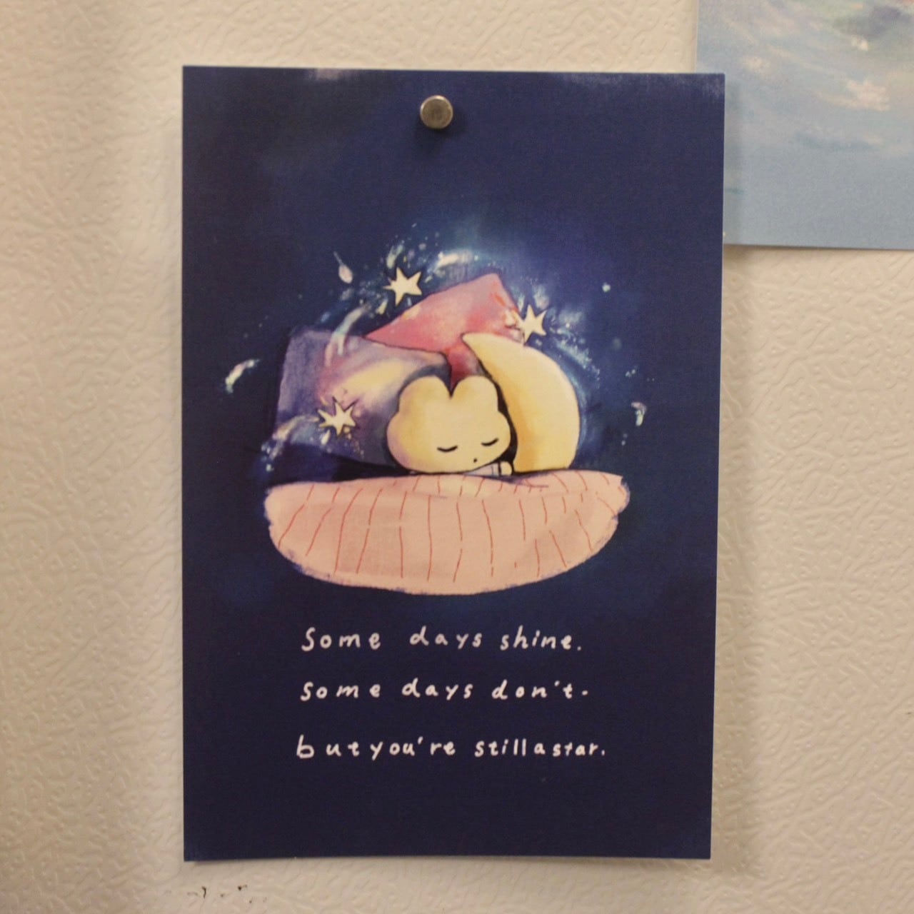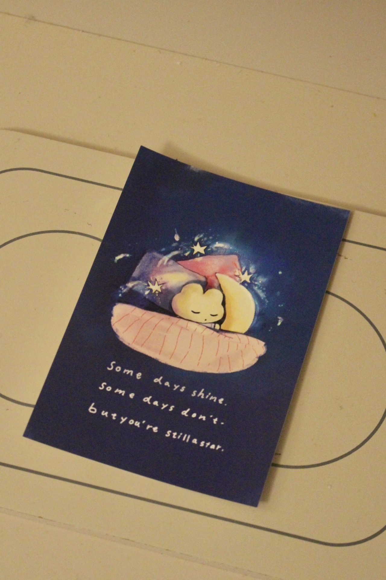 すやすやと眠るモチモチヨチヨチズのポストカードです。