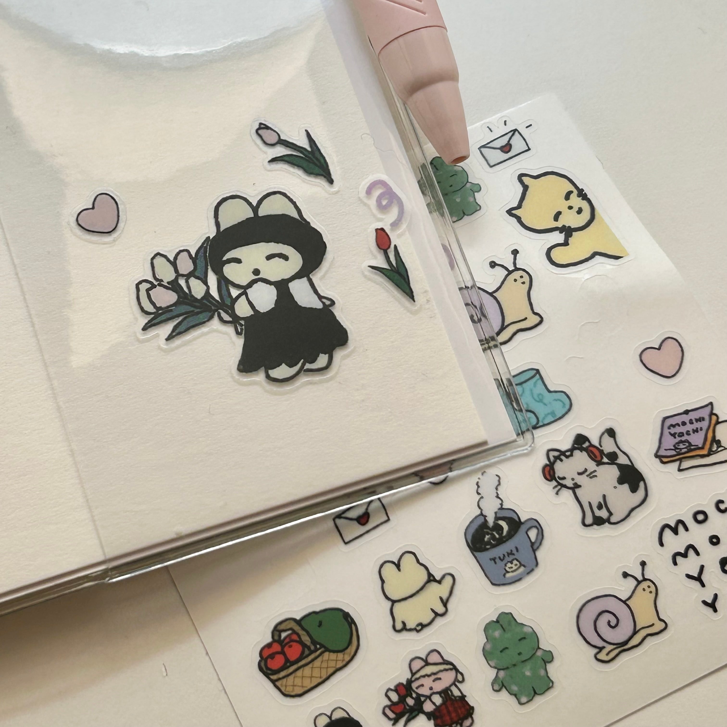 3月の個展で販売したモチモチヨチヨチズの新作のシールです。